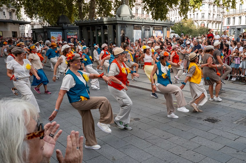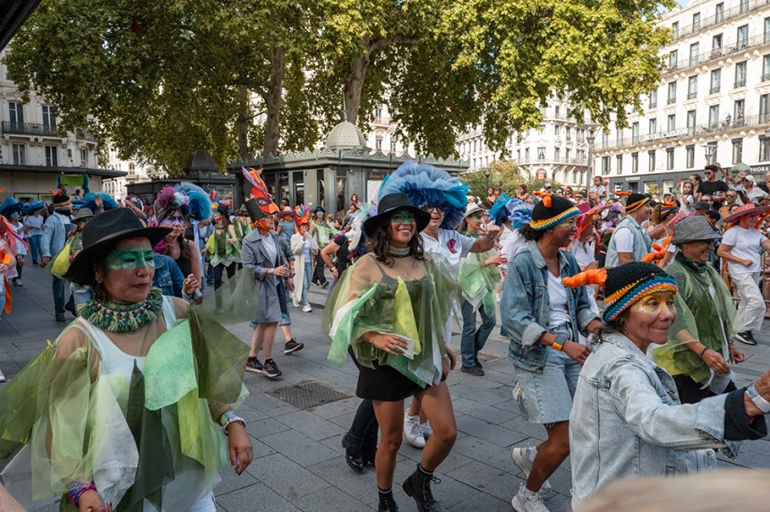 Девет групи дефилираха по улиците в центъра на Лион. Атмосферата беше карнавална. С много музика и танци. Групите бяха смесица от всички възрасти. Това беше абсолютен бонус към пътуването ни, който ни зареди с хубави емоции.