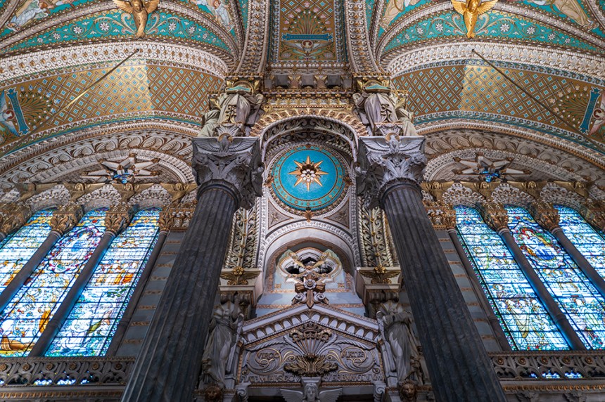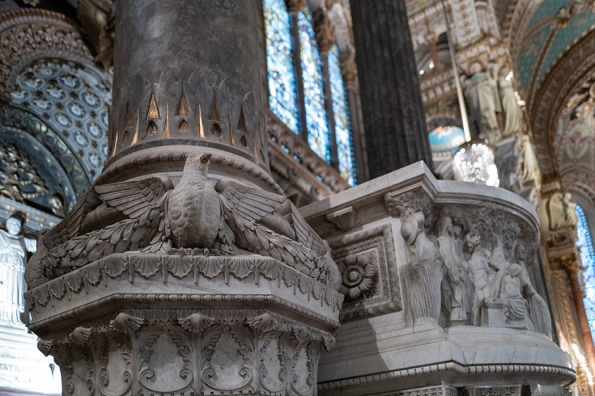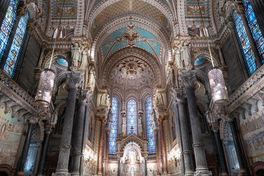 Базиликата Нотр Дам де ла Фурвиер гордо стои на върха на хълма Фурвиер. Това е едно от бижутата на Лион. Тук освен на красивата архитектура на сградата, може да се насладите и на прекрасна гледка към целия град от голямата тераса от ляво на базиликата. Влезнахме от втория опит защото винаги уцелвахме месата, по време на която, снимането е забранено.