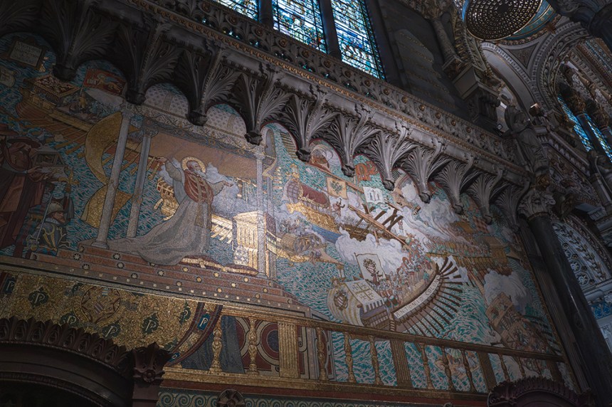 На хълма Фурвиер, катедралата блести над града.