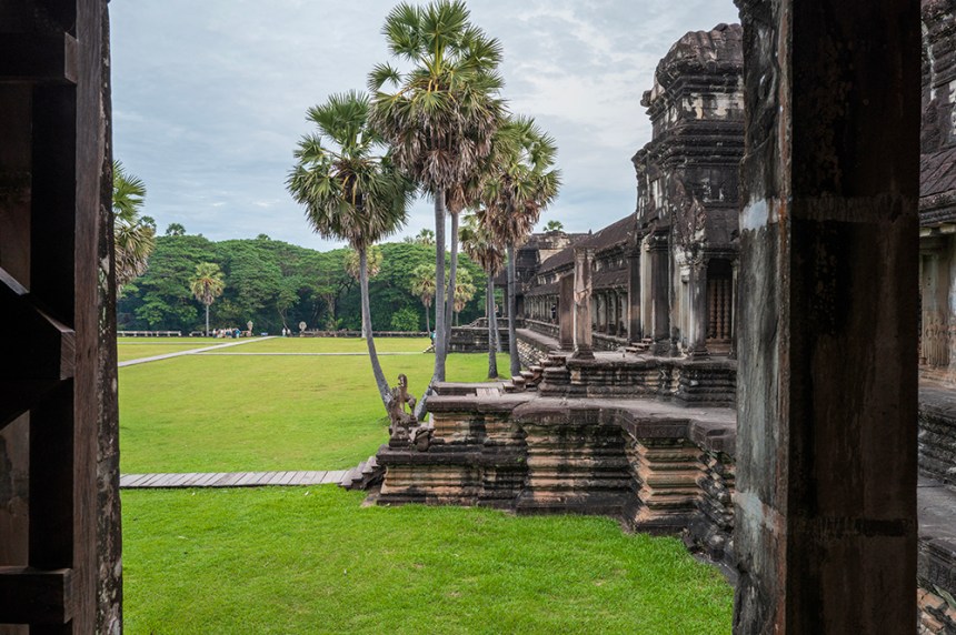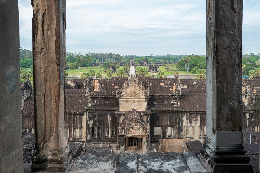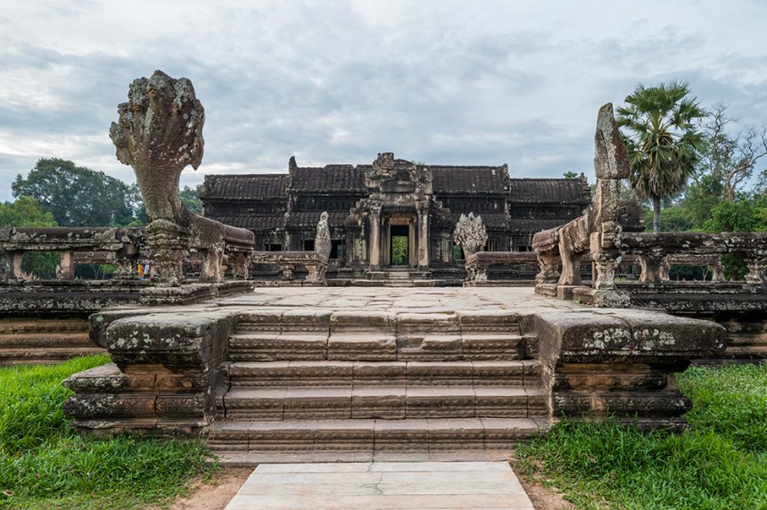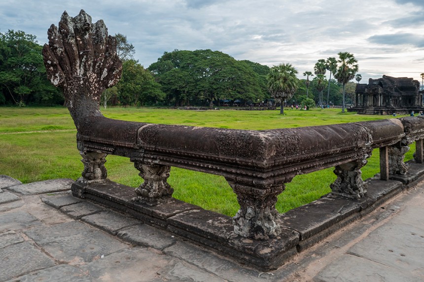Преминахме по дългата входна пътека над 200-метровия ров и се озовахме пред внушителен входен павилион. Представях си как някога през трите му прохода са минавали слонове в тържествени кралски шествия. След портата продължихме по пътека с дължина над 300 метра, пазена от каменни наги (митични змиеподобни животни), които сякаш ни водеха навътре в сърцето на храма.