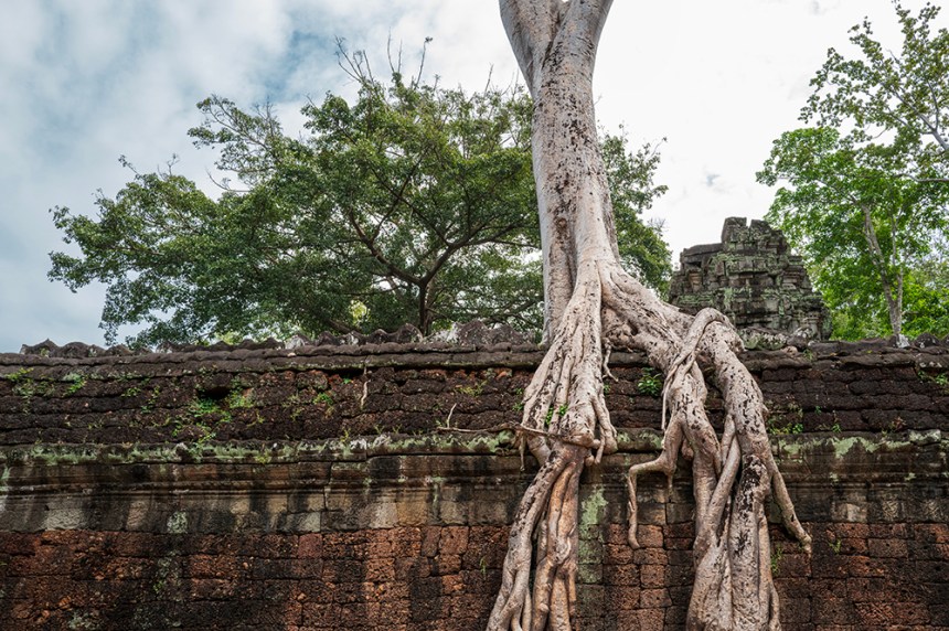 Храмът е лабиринт от кули, затворени дворове и тесни коридори, много от които днес са напълно непроходими. Каменните блокове лежат разхвърляни, изместени от мощните корени на дървета, израснали и загинали преди векове. Всичко изглежда крехко и величествено едновременно.