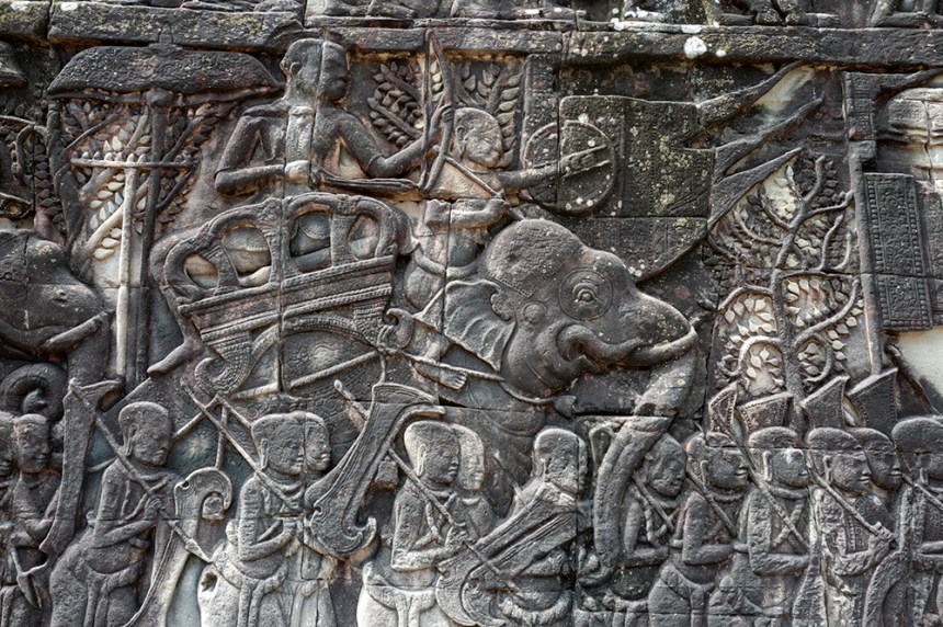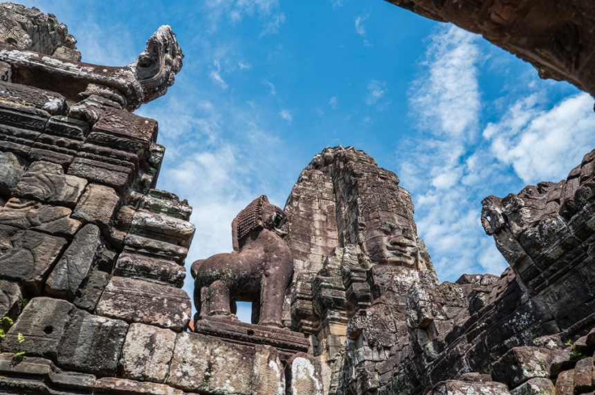 Над портата се извисяват кули с лица, обърнати във всички посоки, а в основата ѝ слонове пазят входа, носейки бог Индра. Камъкът е тежък, монументален, но изпълнен със символика. И въпреки че стените изглеждат като крепост, усещането не е за защита, а за ритуал – сякаш целият град е бил сцена за церемонии, а не за война.