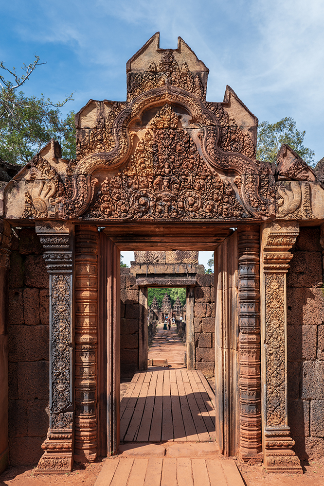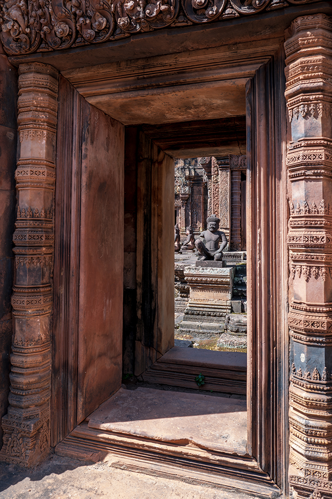 Бантей Срей е истинското бижу на Ангкор – малък по размер, но поразителен по красота. Още щом го видях, разбрах защо го наричат художествената галерия на Ангкор. Издълбан от камък с нежен розов оттенък, храмът е обсипан с едни от най-фините резби, които съм виждал – толкова детайлни, че изглеждат почти живи. В първия момент помислих, че е дърворезба. Макар да е започнат още през 967 г., той е изключително добре запазен и сякаш устоява на времето с лекота.