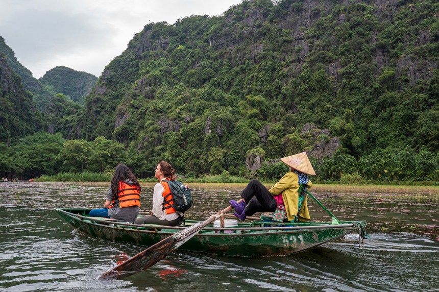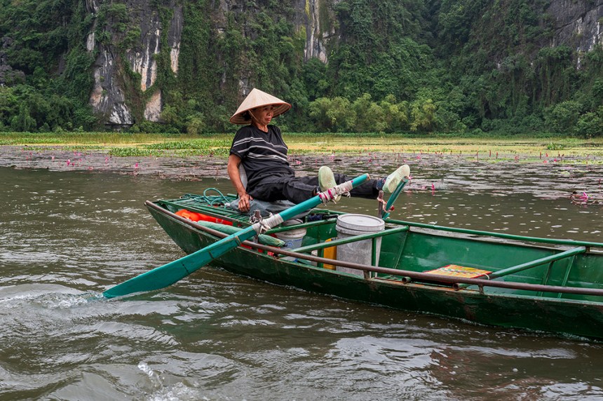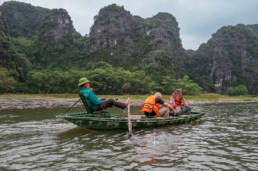 От Ханой до тук, разстоянието е около 100 км. В ранният следобед прекарахме 2 часа на лодки в ландшафтният комплекс Транг Ан, част от световното наследство на ЮНЕСКО. По време на разходката с лодка всичко се случваше бавно – водата, движенията, мислите ни. Тотален релакс. Преминавахме покрай стръмни скали, няколко пещери, през тишина, прекъсвана само от шума на греблата. Изглеждаше почти нереално – място, в което природата и историята са се слели естествено. Времето беше разкошно за активности на открито. Температурата беше 23 градуса и имаше облаци, които ни пазеха от слънцето.