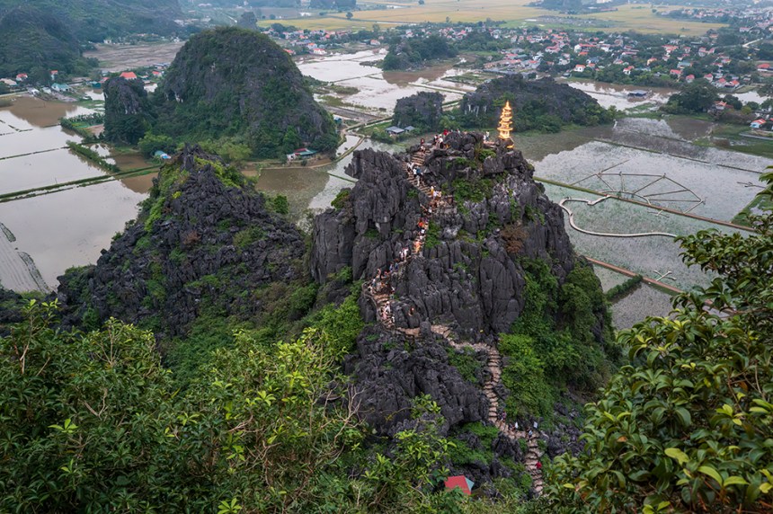 Изкачването е 500 стъпала, но стръмният преход си заслужава усилието. Наградата от върха е разкошна панорама към долината Там Кок. Гледка, простираща се към хоризонта и към реката, която се вие лениво сред оризища и варовикови скали. А от другата страна, къщите на близките села.