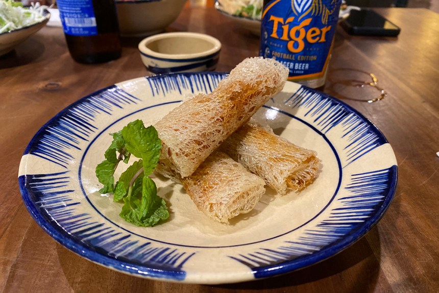 Аз си избрах пролетни рулца, които за моя изненада изглеждаха доста интересно, а на вкус бяха фантастични. Салатата със скариди също беше много вкусна. А, печеното свинското беше много тънко нарязано като пържоли, сложено между две клечки.