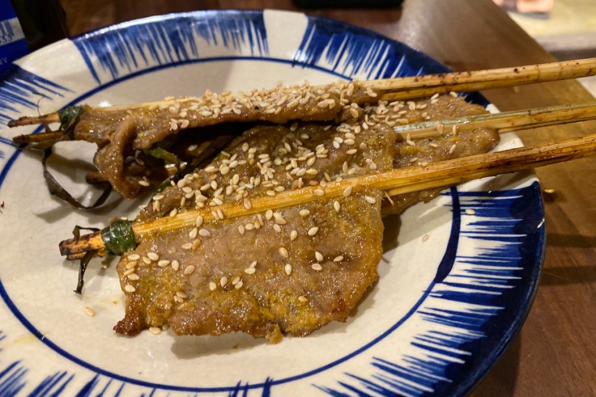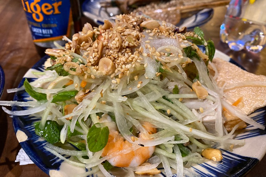 В един от ъглите, на ниска пейка, седяха местни – обядваха спокойно и мляскаха звучно. Някой сърбаше супа, друг мълчаливо разбъркваше ориз.