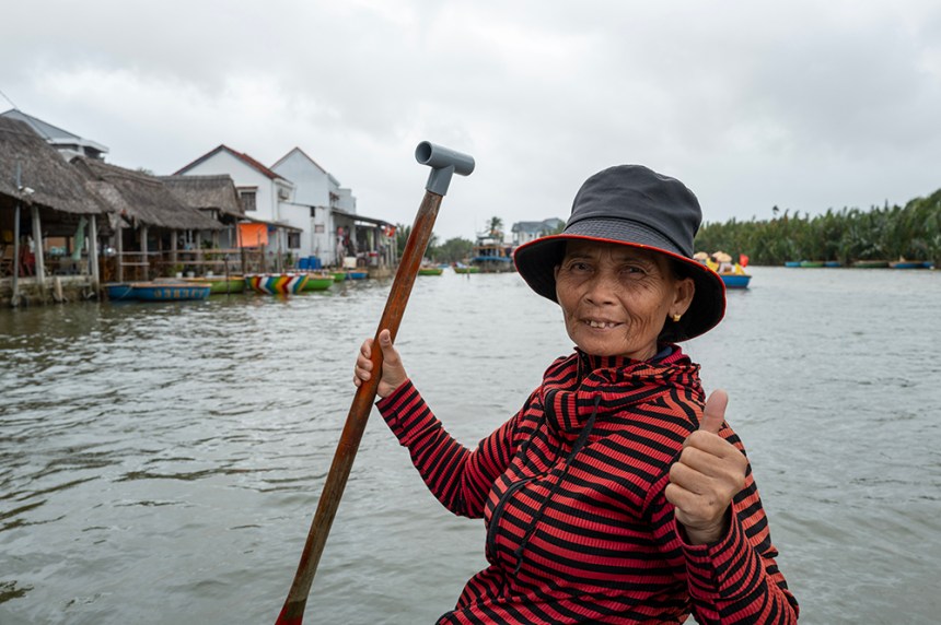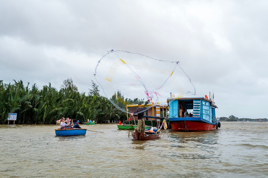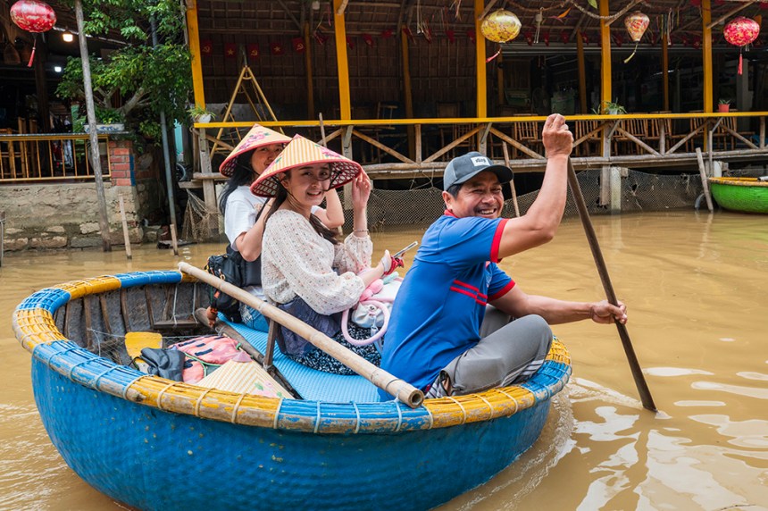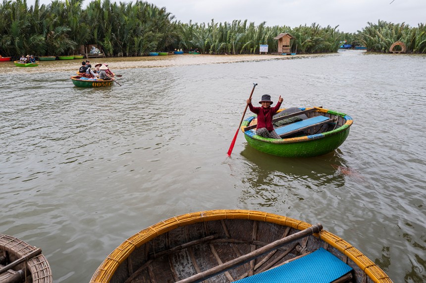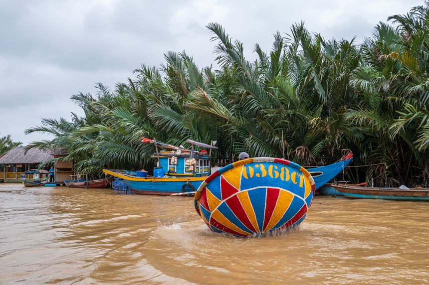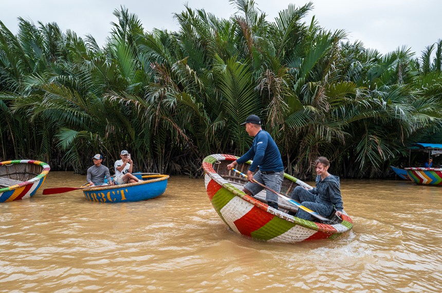 В Кам Тхан, на няколко километра от Хой Ан преживяването беше съвсем различно. Качих ме се в онази странна на вид кръгла лодка–кошница, която изглежда повече като голяма купа, отколкото като плавателен съд. Още първите секунди, в които лодкарят на една от лодките я завъртя леко за демонстрация, ми стана ясно, че тук балансът е изкуство.