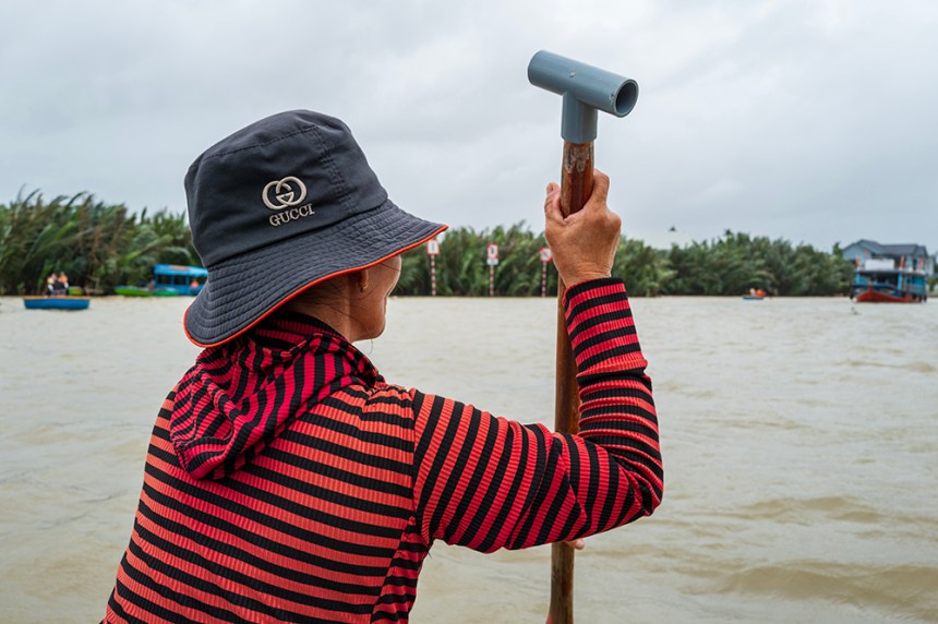 В моята лодка се падна баба-лодкар с избеляла шапка GUCCI. Във Виетнам много хора са облечени със световни марки, макар и „first copy“, както ми казваха продавачи в градовете, в които бяхме и се опитваха да ни продават какви ли не „луксозни марки“.