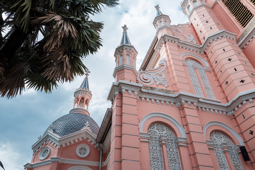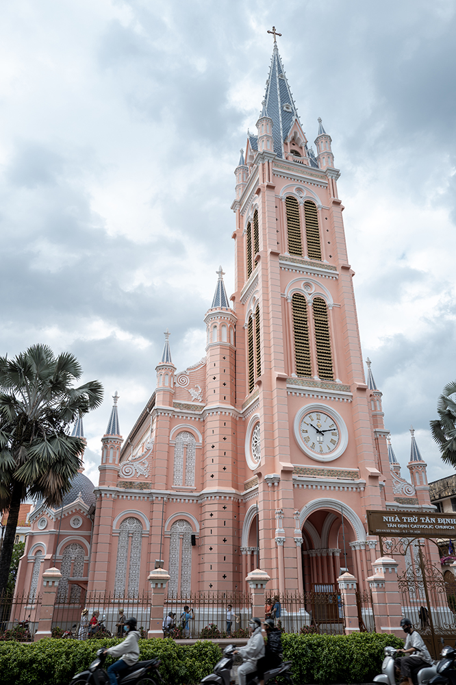 Сред оживения градски пейзаж на Сайгон има едно скрито бижу – католическата църква Тан Дин. Тази 150-годишна църква, обляна в изненадващо розов оттенък, се откроява на фона на градския хаос.