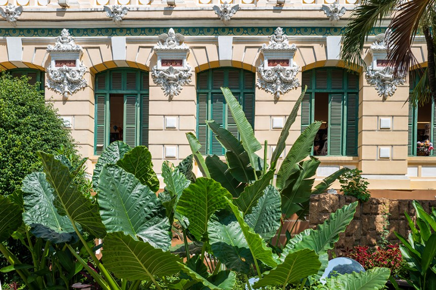 Екстериорът на сградата е украсен със сложни детайли, включително арки, колони и декоративни железни елементи, характерни за европейската архитектура. Особено големият часовник над главния вход е фокусна точка, привличайки погледа към величествената фасада на сградата. Освен това, при влизане, посетителите са посрещнати от просторна централна зала с висок сводест таван, поддържан от ковани железни греди. Всъщност, интериорът е също толкова впечатляващ, колкото и екстериорът, с антични дървени мебели, цветни подове и стени, украсени с исторически карти на Виетнам и Сайгон.