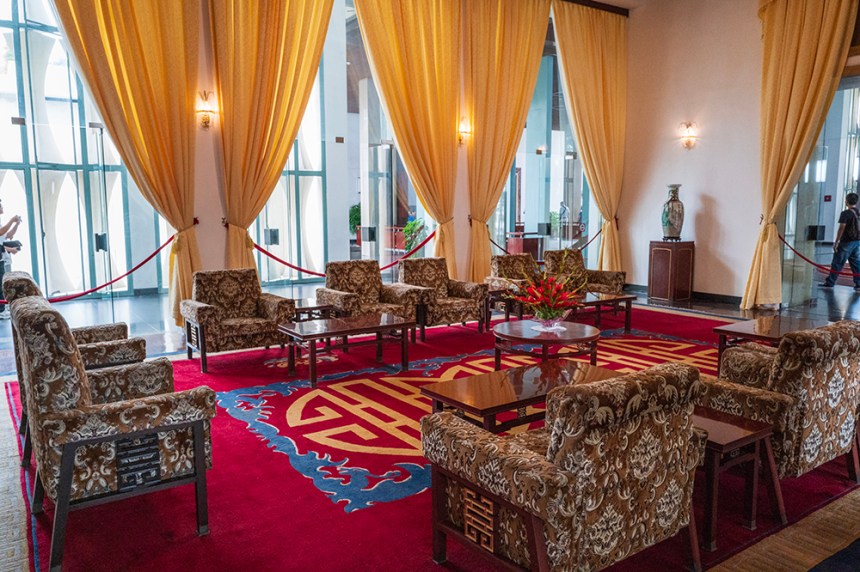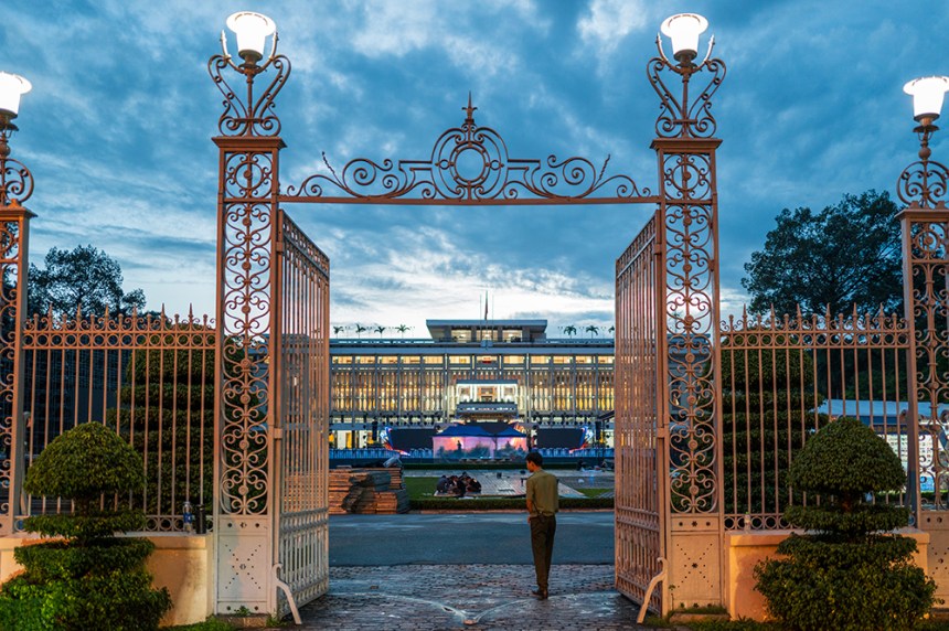 Разхождайки се из залите на Двореца на Независимостта, познат преди 1975 г. като Президентски дворец, имах чувството, че времето е спряло. Построен на мястото на стария Норьодомски дворец, разрушен през 1962 г., новият комплекс е завършен през 1966 г. и е служил като официална резиденция на президента на Южен Виетнам.