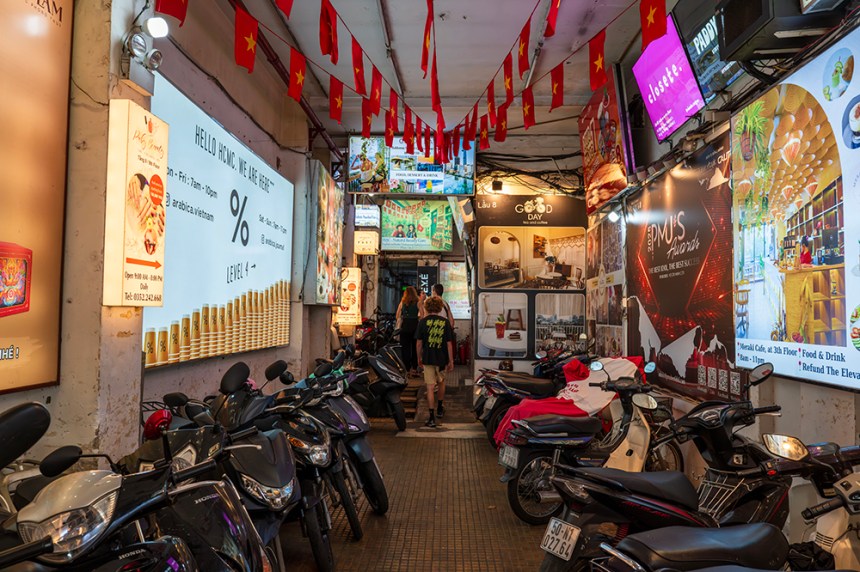 Преобладаващото тук са кафенетата, сервиращи кафе, но всъщност има и класически виетнамски заведения за храна, магазини за бижута, козметика, дрехи, салони, както и магазини за сувенири.