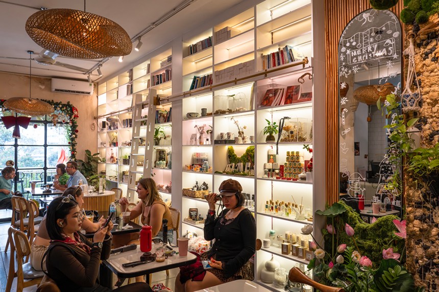 На улицата има и едно приятно кафене, което е идеално място за сядане с чаша виетнамско кафе и нова книга.