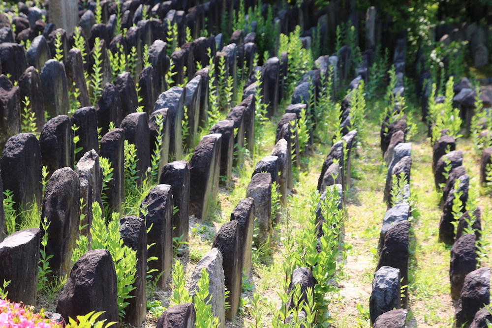 Надгробни плочи в двора на храма Ганго-джи
