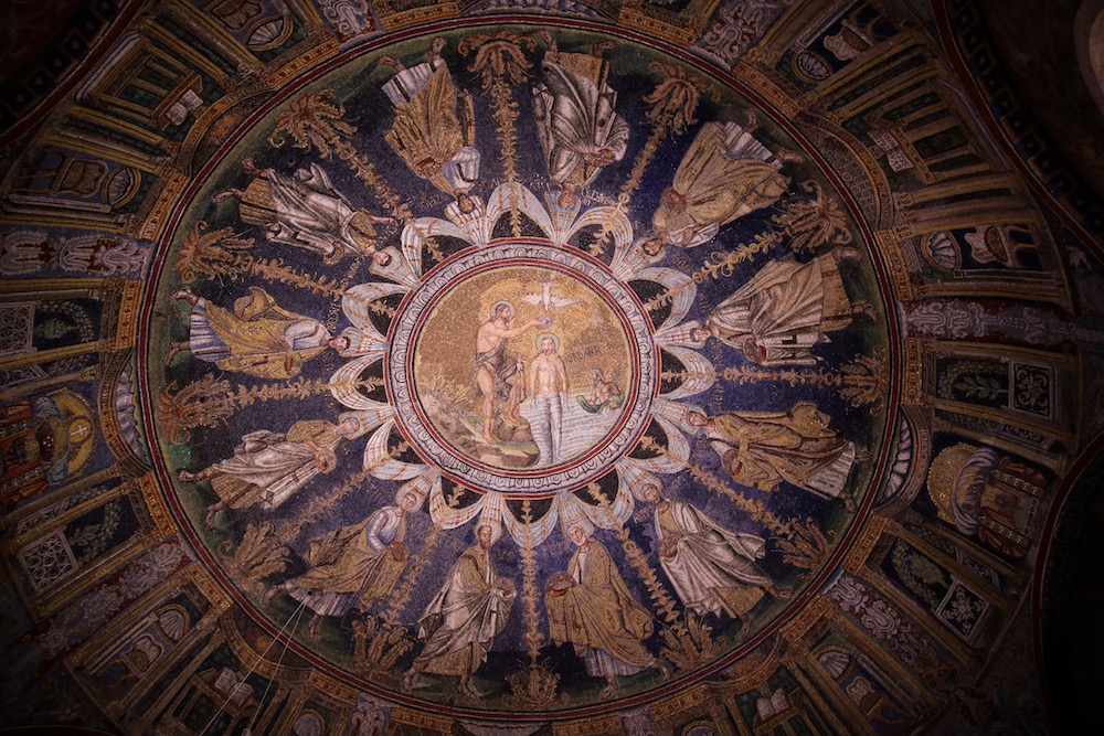 Названието „Баптистерий на Неон“ получава в чест на равенския епископ Неон, който го украсява с мозайки през втората половина на V век.