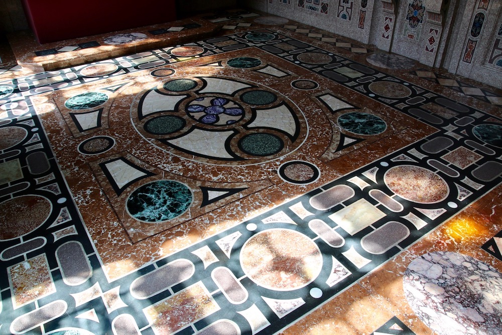 Мраморният под на Богатия параклис.