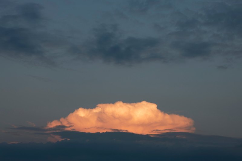 Небето над хоризонта се превърна в магичен спектакъл на цветове и форми. Златистите нюанси на залеза се отразяваха в белия облак, който беше истинската звезда на този фантастичен пейзаж. Облакът беше като голям пухкав памук, който се е обагрил в нежни оттенъци на оранжевото. Плавно се носеше над хоризонта и изглеждаше като парче от приказна…