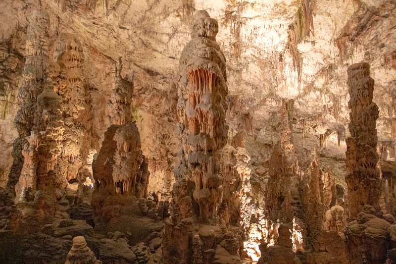 Сталагмити в пещера Постойна.