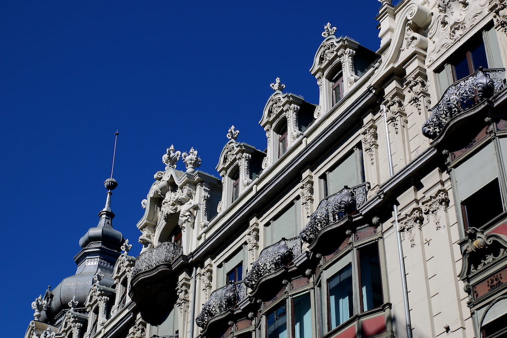 Част от фасадата на красива сграда.