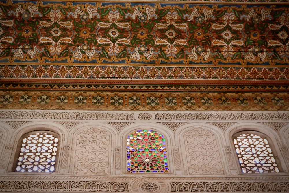 Издълбана мазилка, витражи и ръчно рисуван таван.