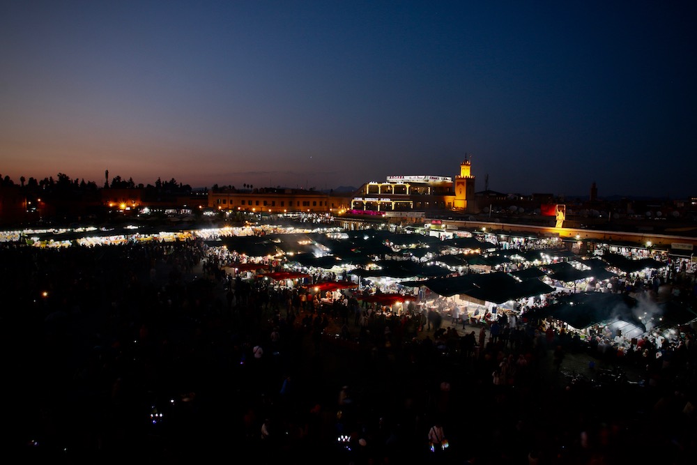 Сергиите за храна на площад Джемаа ел Фна, Маракеш.
