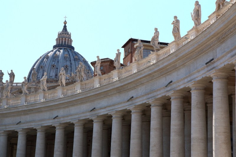 Колонадата на Бернини и куполът на базиликата Свети Петър.
