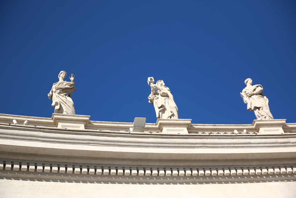 Статуите над колонадата на площад Свети Петър.