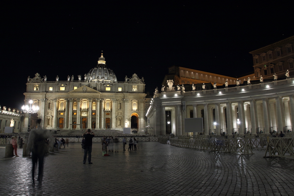 Базиликата и площад Свети Петър през ноща.
