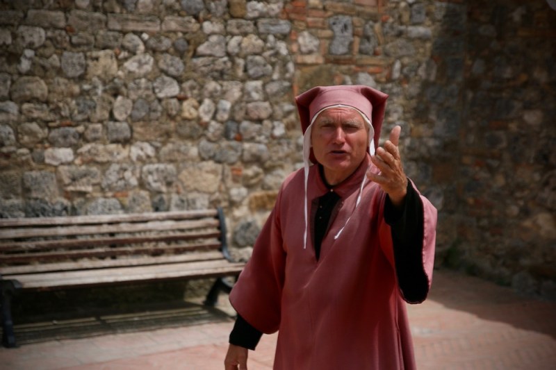 Уличен артист, рецитиращ Божествена комедия.