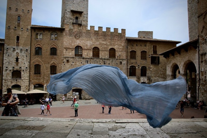Пиаца дел Дуомо и арт инсталацията „Попътен вятър“.
